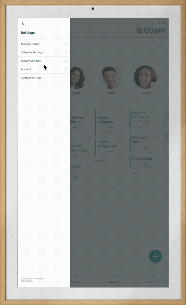 To view the weather on your Hearth Display, you will need to input your location to ensure the most accurate weather. To add your location, tap on the weather widget on the top left-hand side of your Hearth Display. From here, simply tap on the “Display Settings” button on the bottom right-hand corner of the weather window that appears. Here, you can add your location, select your desired temperature scale, and toggle the weather widget on/off on both your Hearth Display’s header and Privacy Mode.