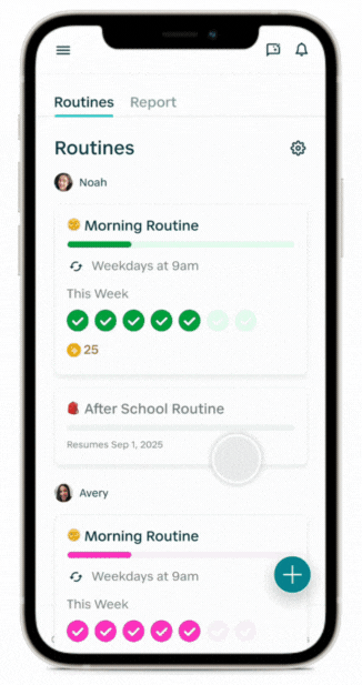 Does your family need a break from the normal routine? The ability to pause Routines allows you to take a break from Routines during vacations, summer breaks, or any special occasion. When you’re ready to begin your Routine again, you can pick back up where you left off with just a tap.