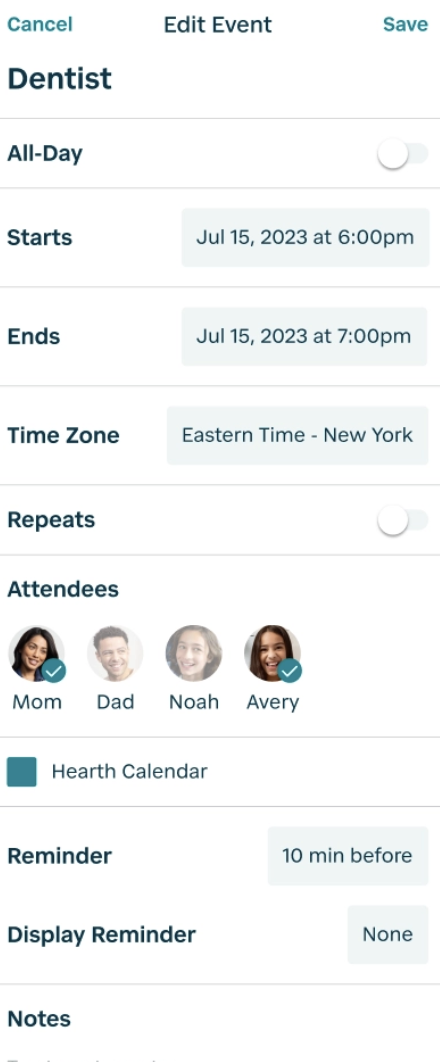 Note: Display Event Notifications are currently only available for events created directly in the Hearth App or Display.