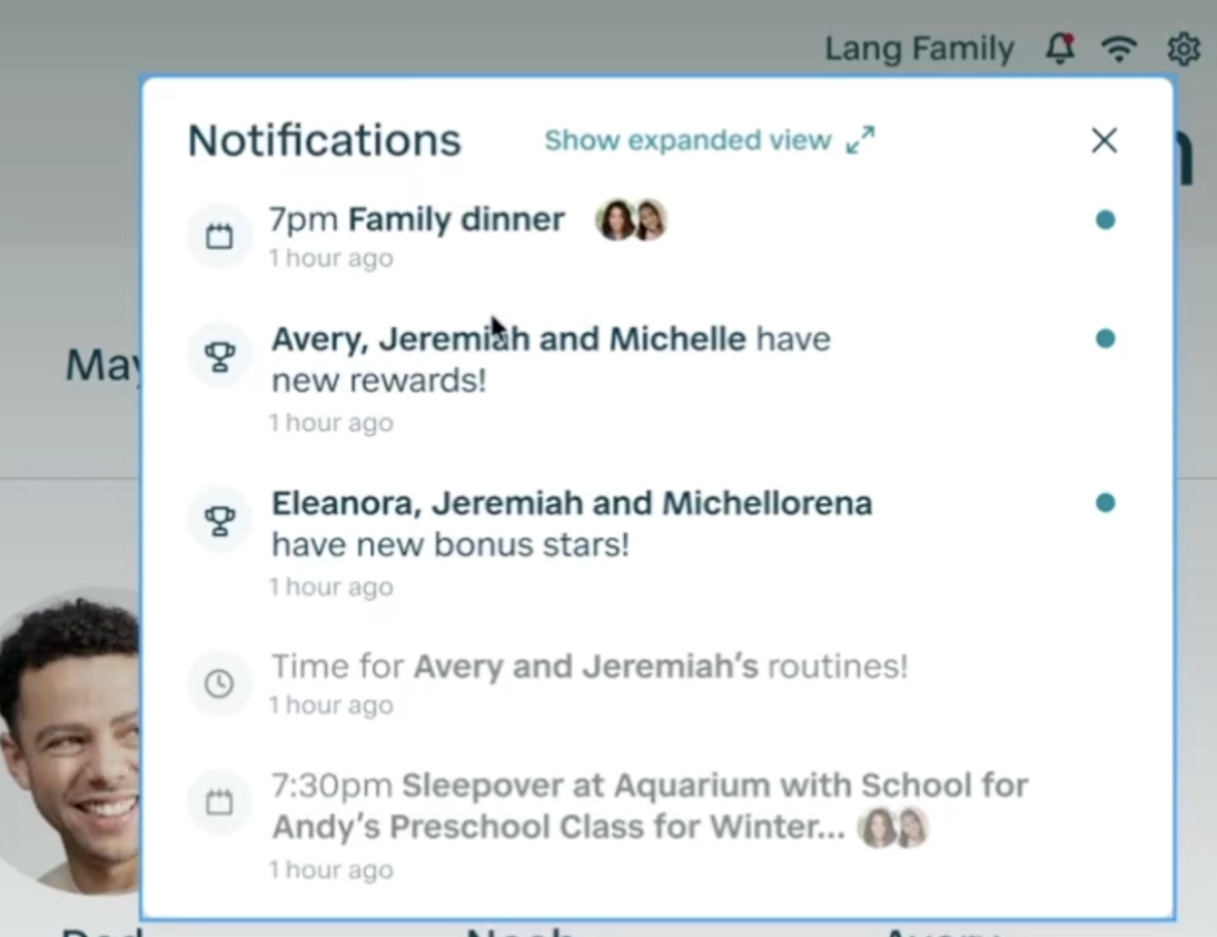 Display Notifications let reminders appear directly on your Hearth Display with a sound cue—so your family never misses what’s next. You can use them for Hearth-created events, routines, and rewards.